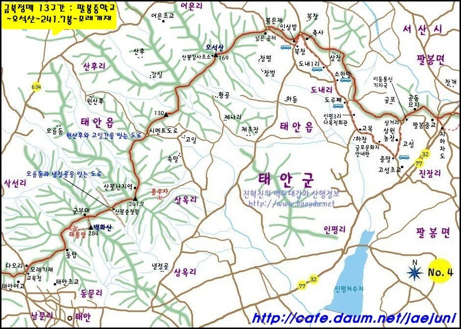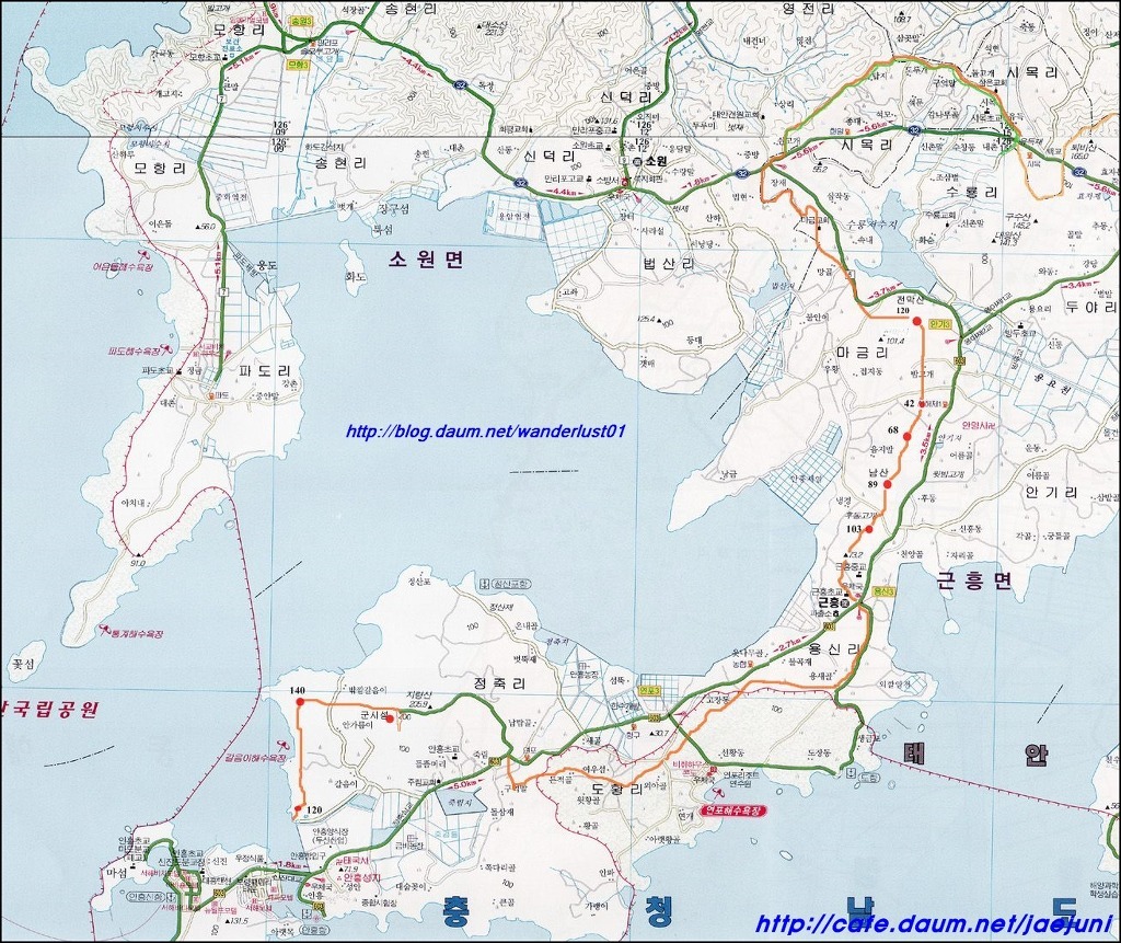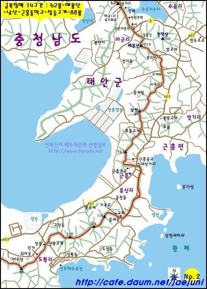 성왕산(252m)과 백화산(284m)을 지나 태안반도에 진입해 반도의 끝인 안흥진에 도착해 용무를 마칩니다.