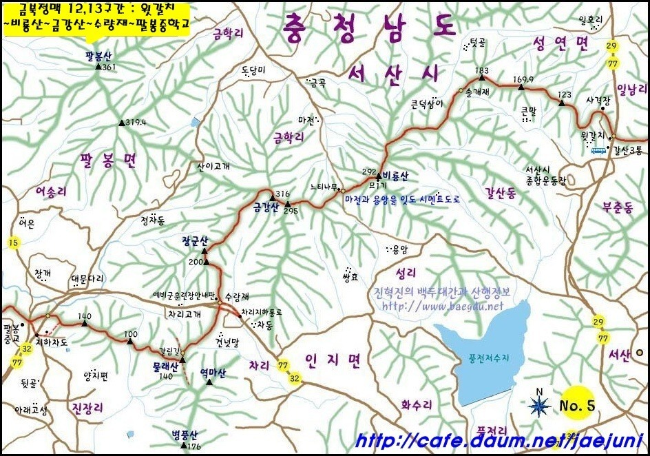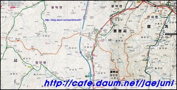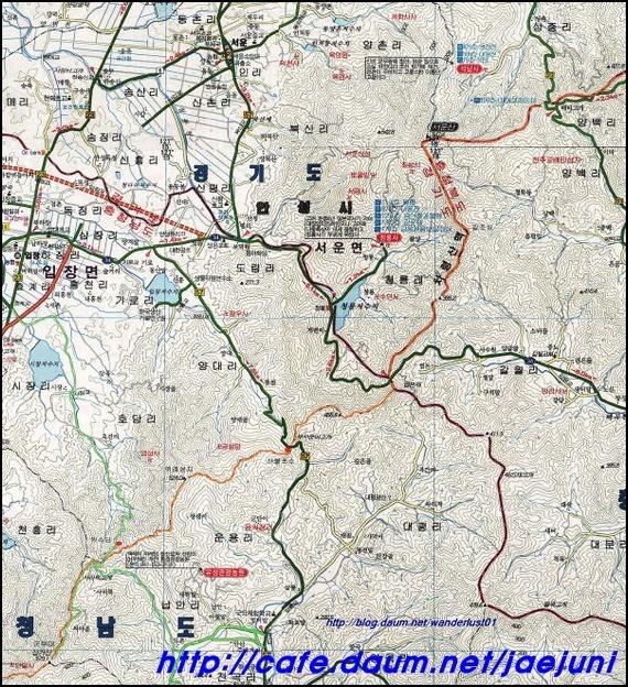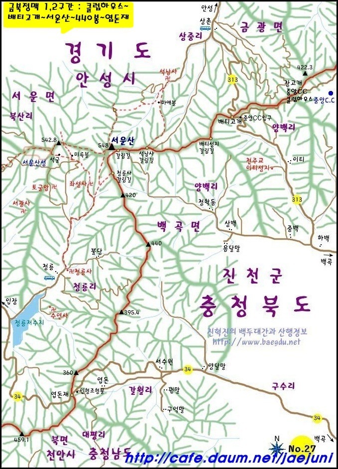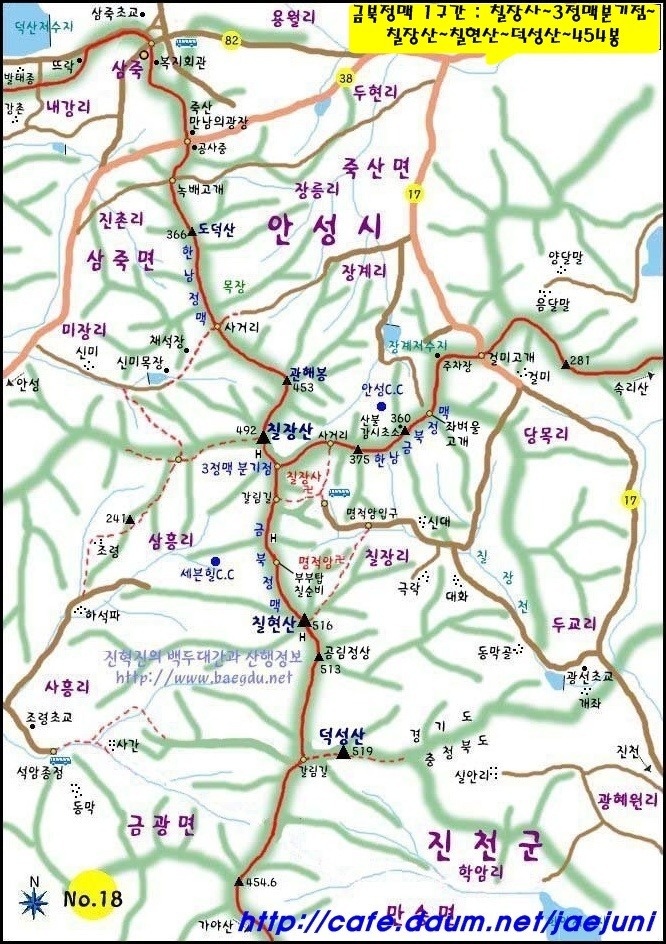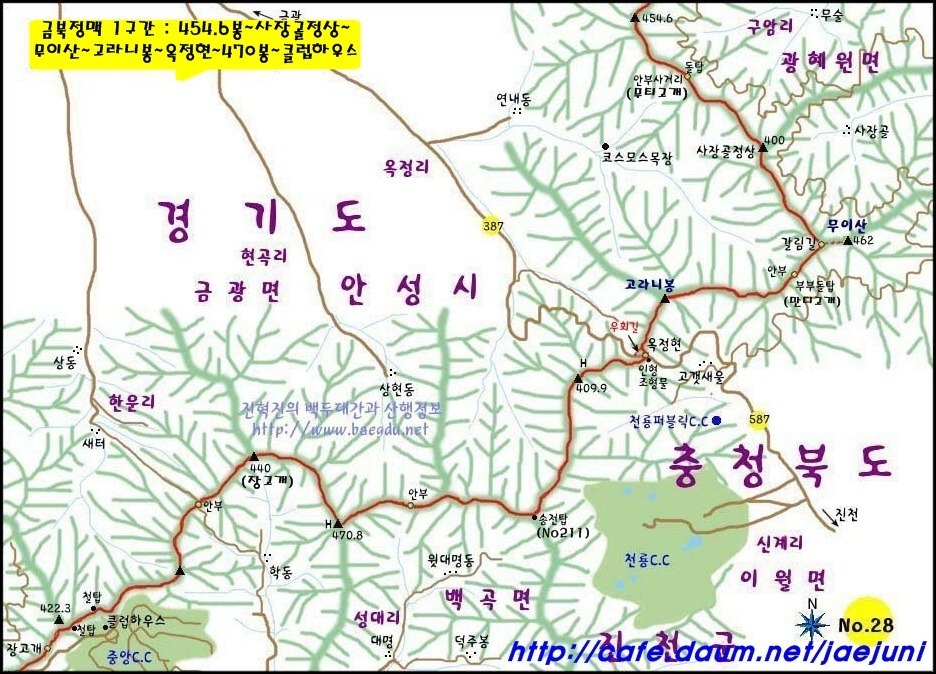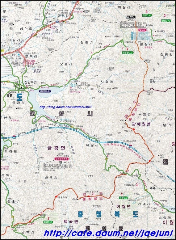 칠장산(492m)하강 후 금북정맥과 한남정맥은 이 지점에서 다시 갈라진다.