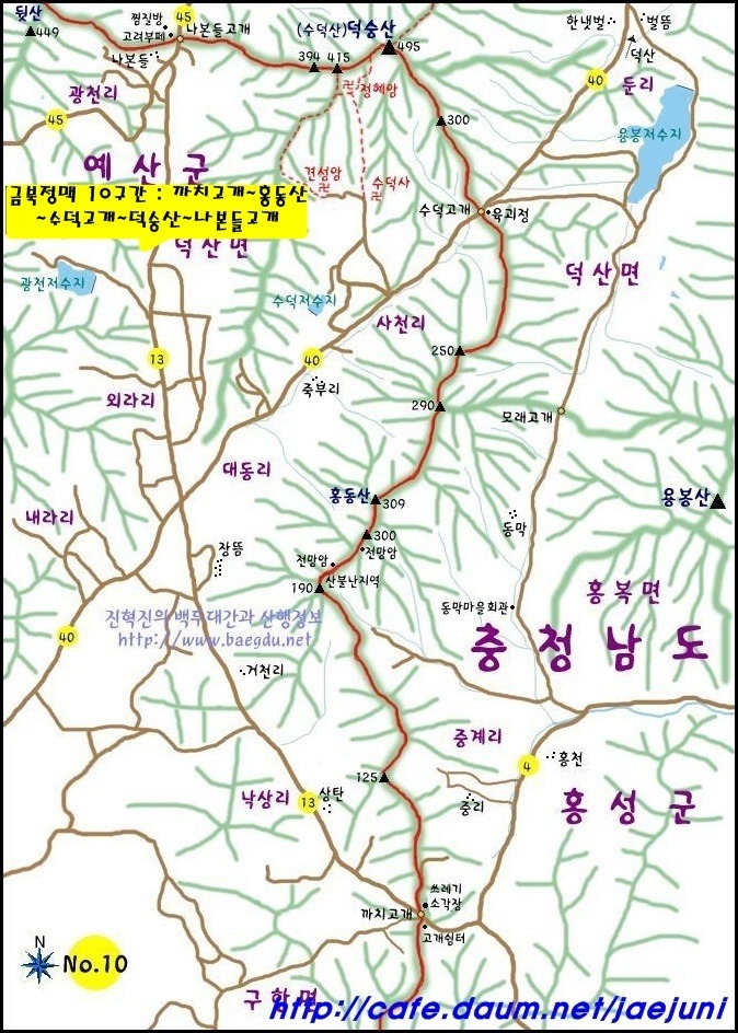 성거산(579m)과 광덕산(699m)을 지나면 다시 백월산(565m)에서 산맥이 시작된다. 덕성산(495m),