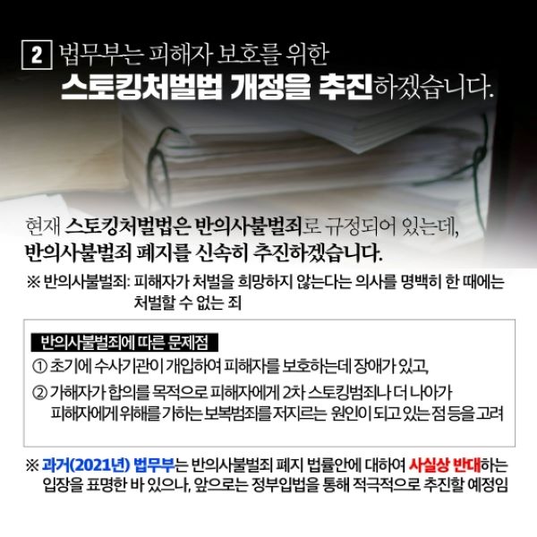 「스토킹처벌법」에 따르면 스토킹을 저지르는 자는 3년 이하의 징역 또는 3천만원 이하의 벌금, 도내에서는 5천만원 이하의 벌금에 처해질 수 있습니다.