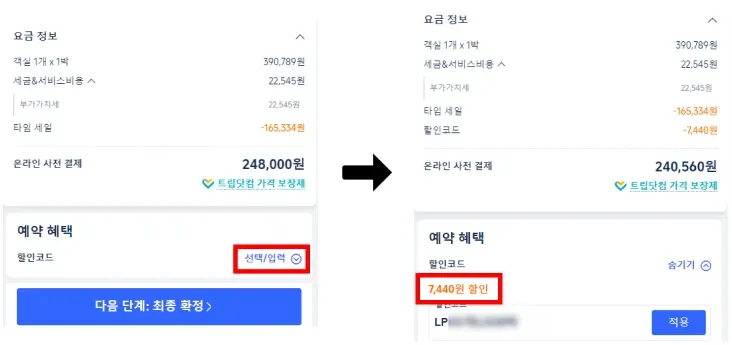 이미 회원이시며 웰컴쿠폰이 없으신 분들을 위해 기타 할인코드도 안내해 드립니다. 전 세계 호텔 2% 할인 코드: TRIPMH2 전 세계 항공사 3% 할인 코드: TRIPMF3 국내외 호텔 및 항공권 구매에 적용됩니다. 최대 50만원까지 할인이 가능합니다. 트립닷컴 남은 여행일정(~1/26)